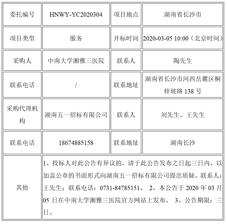 [上一篇] 中南大学湘雅三医院临时派工年度服务项目采...