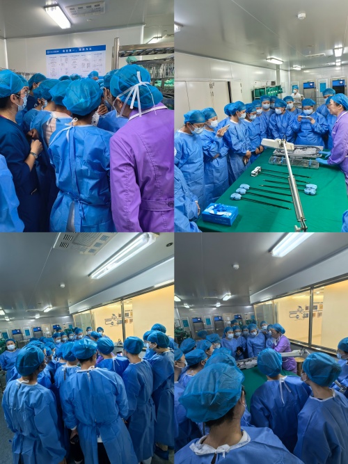 在精密器械处理区域,手术区组长许佳佳重点展示并讲解了 “达芬奇手术机器人” 等高端精密器械的专用清洗、消毒及灭菌流程。这类器械结构的复杂性与处理的高标准要求,引发了老师们的浓厚兴趣,大家就此展开深入交流。