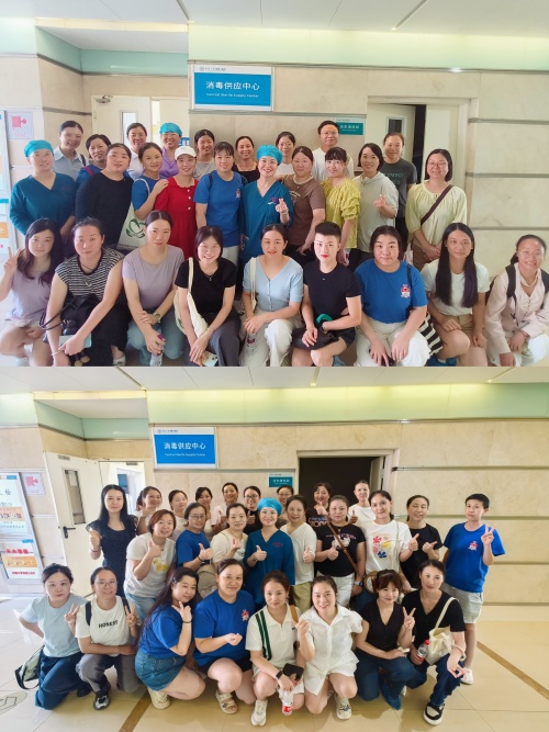 在杨霞的带领下,各位护士老师走进了忙碌而有序的 “后台” 工作区。从器械去污、检查包装,到灭菌发放,参观团深入科室各个工作环节,围绕专业流程、质量管理等议题展开现场观摩与深入探讨。