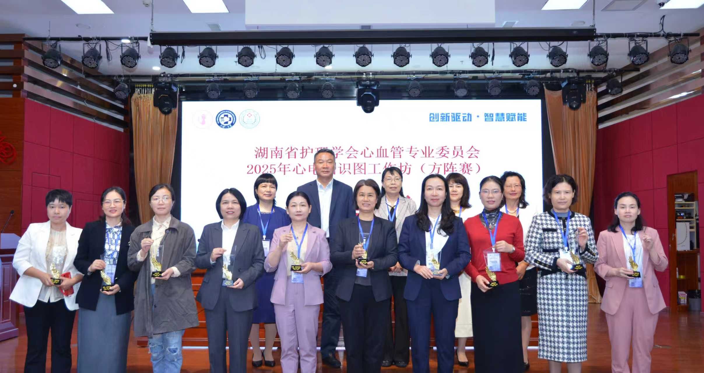 学术交流聚焦学科前沿与临床痛点,涉及指南解读、循证实践、智慧护理、无陪照护、多场景康复、专利转化等。李庆印介绍了阜外深圳医院护理信息化建设取得的成效并初步探讨了AI在护理领域的应用;陈燕介绍了以症状群为核心的中医干预方式,为中西医结合在心血管护理实践提供新思路;湖北省人民医院蔡忠香详细阐释了基于数字健康技术的房颤患者精准筛查与风险干预的临床实践;浙江大学医学院附属第二医院宋剑平分享了多学科交叉背景下泛血管护理学科发展的创新实践成效;钟竹青基于近5年国家自然科学基金国立项数据剖析了心血管护理研究前沿热点;岳阳市人民医院周建伟解读了慢性心血管疾病患者自我健康管理指南;中南大学湘雅二医院黄伶智解读了房颤患者运动康复专家共识,董阿兰护士长分享了全流程四阶段康复模式在心血管外科患者中的应用;中南大学湘雅医院韩辉舞解读了成人代谢综合症防控健康教育专家共识;中南大学湘雅三医院曾丽雄深入浅出地讲解了心电图的相关知识,郑凤护士长分享了慢性心力衰竭患者家庭安全用药管理方案的实践经验,陆晶主管护师汇报了文献检索的方法和案例解析;长沙市第四医院石凤姣护士长介绍了“医护护患”四位一体的免陪照护病房构建及管理经验;株洲市中心医院胡红玉护士长介绍了外周静脉留置针三位一体式固定方法的专利转化;郴州市第一人民医院雷三菊护士长介绍了基层护士开展1期心脏康复的临床实践经验。
