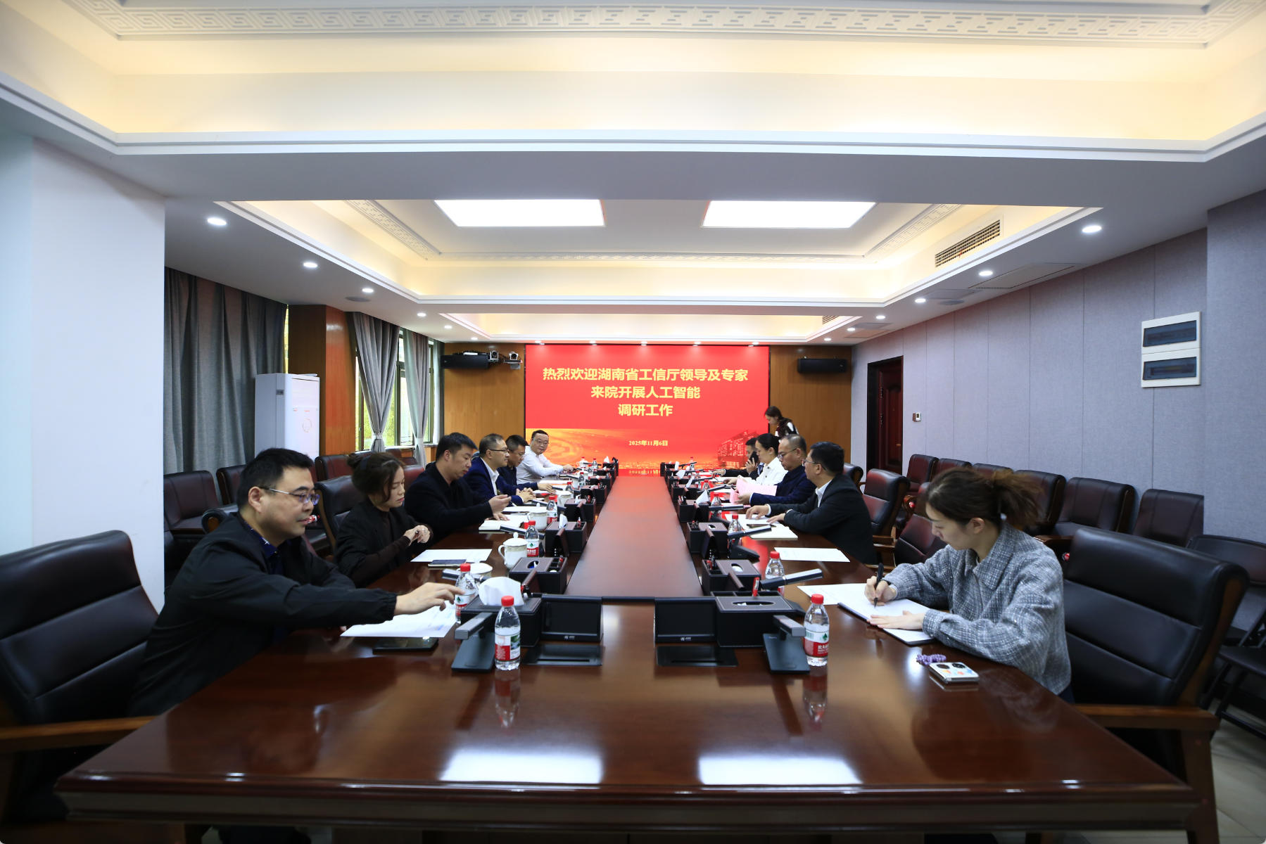 2025年11月6日上午,湖南省工业和信息化厅在中南大学湘雅三医院召开“医院人工智能工作调研座谈会”。省工信厅电子信息处处长刘平带队,联合湖南大学、省数字经济促进会、省传感器产业促进会、省医疗器械行业协会及多家人工智能科技企业代表参与调研。中南大学湘雅三医院院长江泓、党委副书记杨飞龙出席会议,医学信息研究中心主任王安莉等相关部门负责人参加。