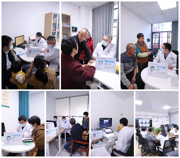 11月16日上午,专家团队在当地开展了义诊活动。皮肤科黄进华教授接诊超过50位患者,用专业的知识为当地患者带来了精准的诊疗方案;曾庆海医师亦帮助不少患者解决了困扰已久的各类皮肤问题;脊柱外科臧晓方教授把诊室变成“微课堂”,边查体边向基层医师讲解脊柱手术指征及要点;超声科高峰教授手把手带教,现场示范十余例疑难病例扫查技巧;放射科蒋翰医师参与多学科影像会诊,为当地医生复盘数十份CT、MRI,梳理病变早期征象“识别清单”;呼吸科陈明、消化内科聂凯两位医师耐心解答患者疑问并给出专业建议,诊疗间隙不忘传授当地同道规范化诊疗思维和临床经验。