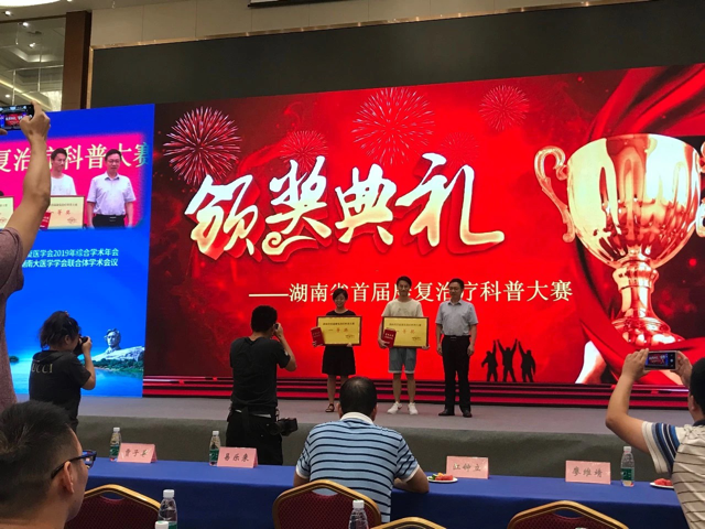 2019年8月23日下午,湖南省首届康复治疗科普大赛总决赛于湖南宾馆会议中心三楼大会厅举办,湘雅三医院康复医学科获湖南省首届康复治疗科普大赛总决赛一等奖。