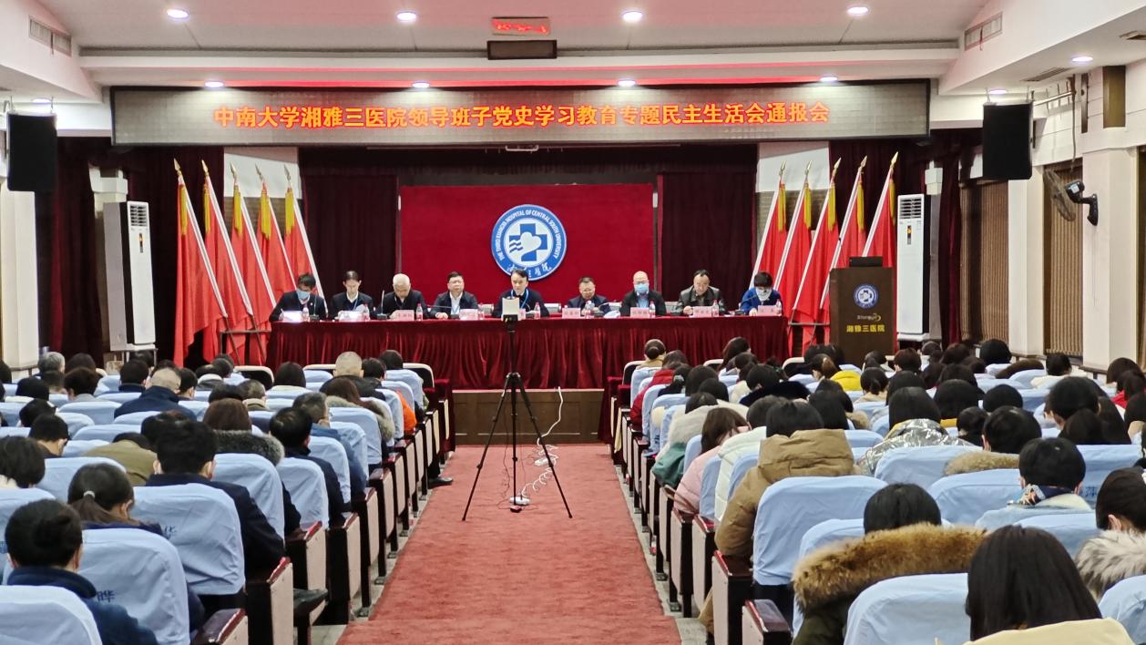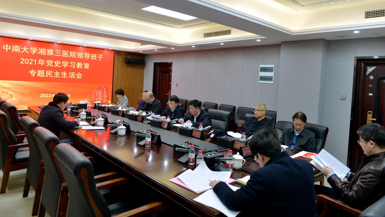 按照学校统一部署和要求,1月6日下午,中南大学湘雅三医院召开2021年度领导班子党史学习教育专题民主生活会。会议由医院党委书记何庆南主持,全体医院党委委员参加会议,中南大学办公室副主任雷先阳到会指导。