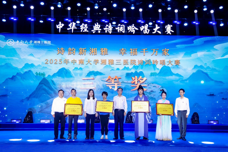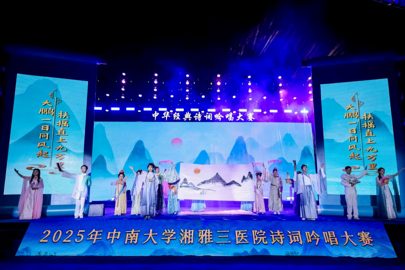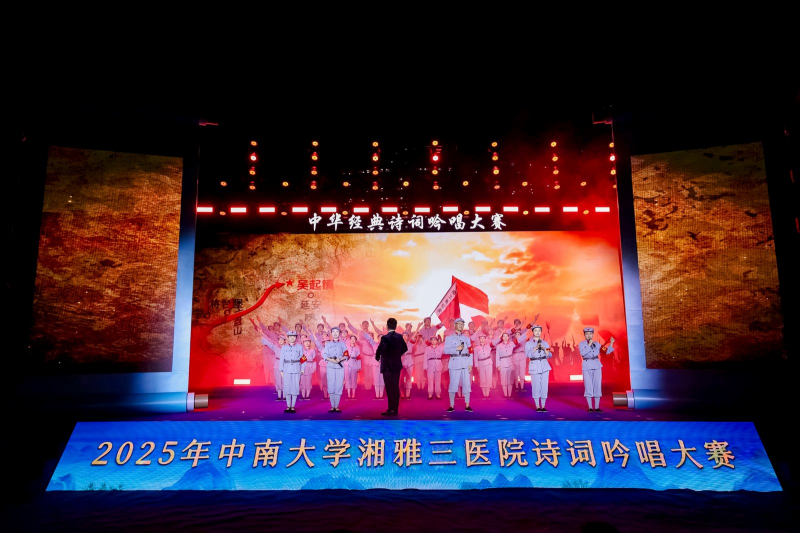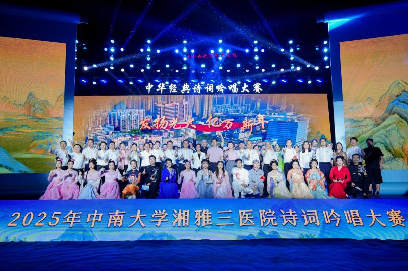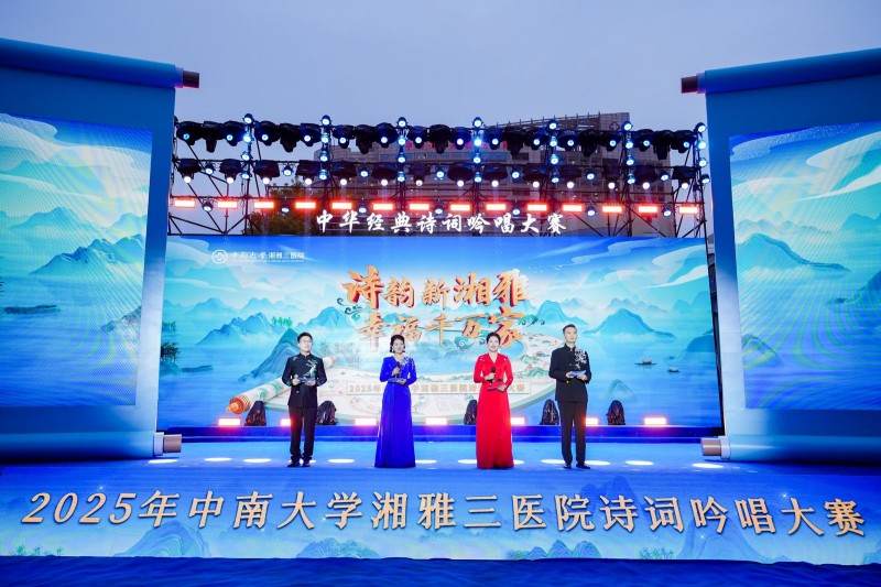 2025年6月22日晚,中南大学湘雅三医院“诗韵新湘雅 幸福千万家”中华经典诗词吟唱大赛在经久不息的掌声中圆满落幕。活动以诗词为桥梁,将医学人文与传统文化深度融合,展现了新时代医护群体的精神内核。这场跨越千年的文化对话,通过14个原创节目,300余位参赛教职员工将全体新湘雅人的才情与情怀娓娓道来,吸引线上线下逾万名观众共赴诗医交融的视听盛宴。医院骨科苏伟平、手术室张靓、泌尿外科崔丽娜、重症监护室翟明达担任主持。