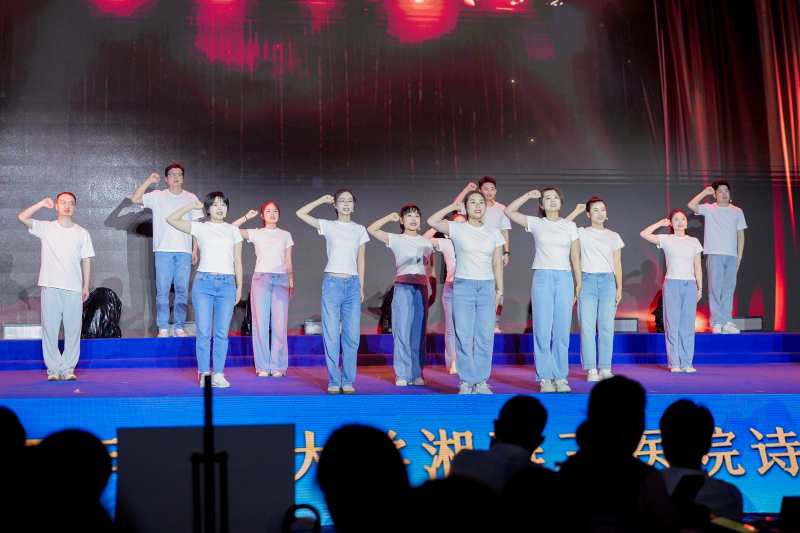 诗词新编《致生命之树》(第二分工会)改编舒婷名作,以“根,紧握在地下;叶,相触在云里”的意象,诉说医护群体与患者的生命联结;歌曲联唱《万里跋涉为家国》(第八分工会)选取《告别》《四渡赤水出奇兵》等经典曲目,以铿锵旋律呼应医疗团队在健康中国战略中的使命担当;诗词新篇《新时代新湘雅医护群像》(第三分工会)以舞台诗词剧形式,通过“路漫漫其修远兮” 等诗句,串联医护工作场景,展现新湘雅群体风貌;情境歌舞《诗画江山图》(第十一党总支)以诗句表演开篇,衔接《诗画中国》歌曲,在水墨画卷与歌声中勾勒医者心中的家国图景;压轴节目《医脉相承新湘雅》由全体院领导与医护人员集体朗诵,以“厚德精医 止于至善”院训为脉络,串联古今医道传承。