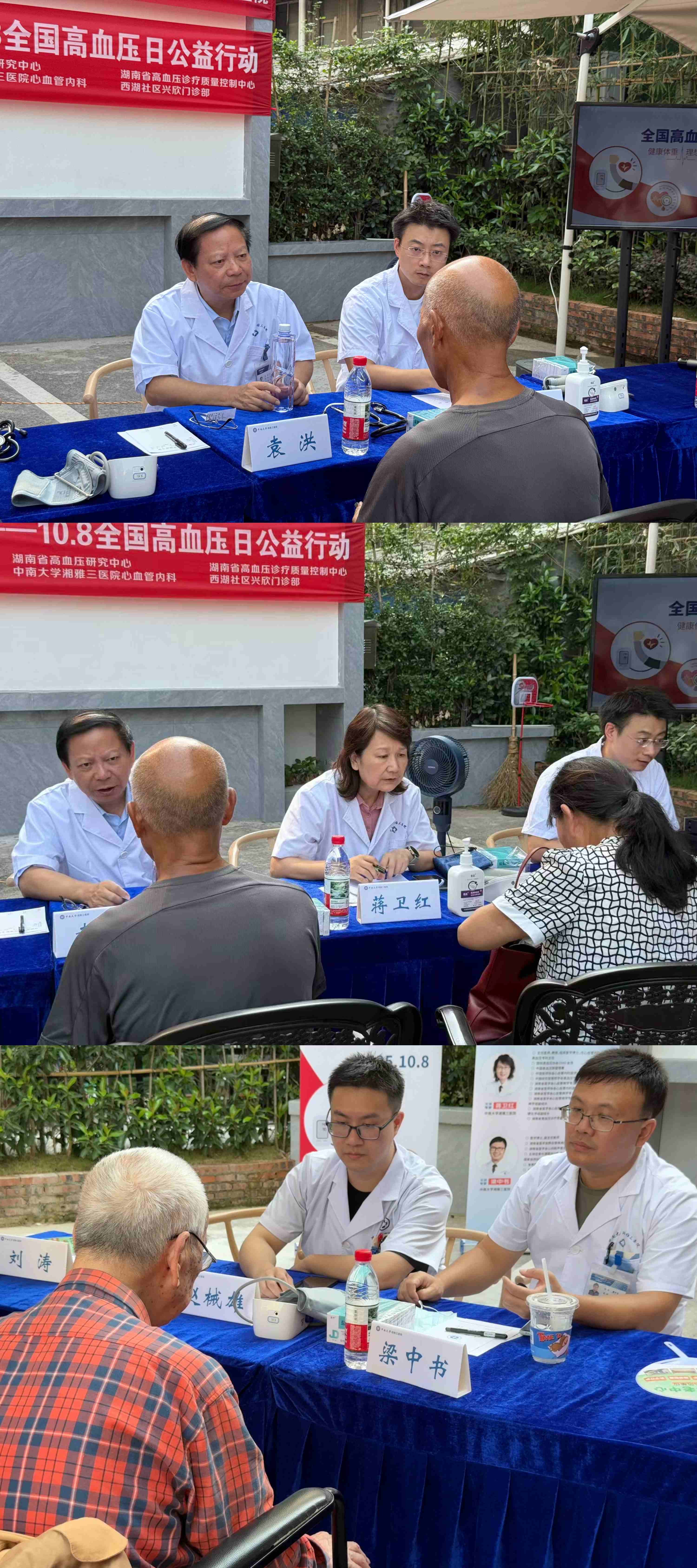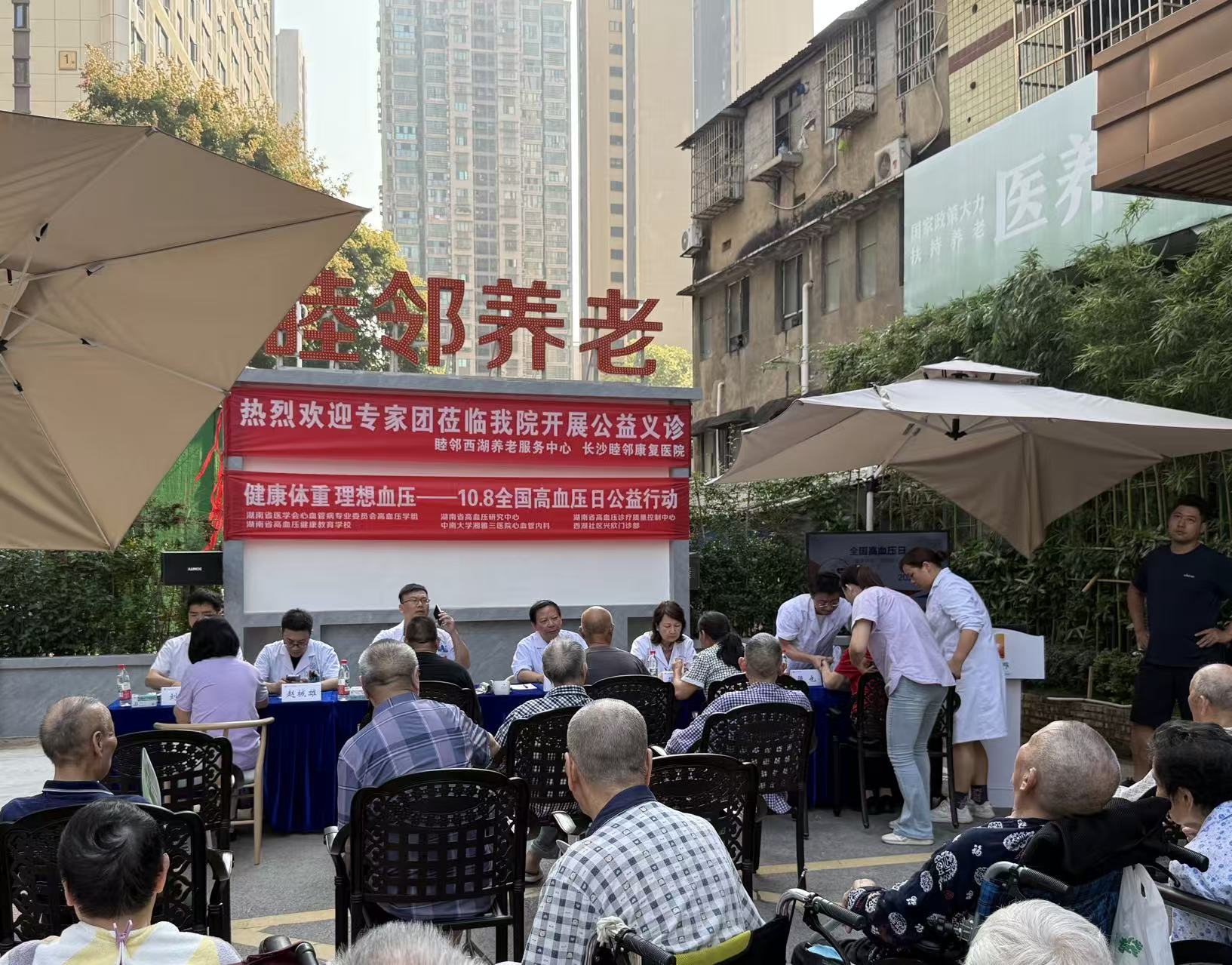 2025年10月8日是第28个全国高血压日。10月9日,中南大学湘雅三医院心血管内科积极响应“健康体重·理想血压”的号召,在湖南省医学会心血管病专业委员会高血压学组、湖南省高血压研究中心、湖南省高血压诊疗质控中心、湖南省高血压健康教育学校的支持下,联合长沙市岳麓区西湖社区兴欣门诊部,在睦邻康复养老中心开展健康教育、义诊及免费咨询公益活动。活动吸引了近100名社区居民参与,现场氛围热烈,得到了社区居民的广泛好评。活动由湘雅三医院主任医师、湖南省心血管病临床医学和高血压研究中心主任袁洪和心血管内科主任蒋卫红共同组织。