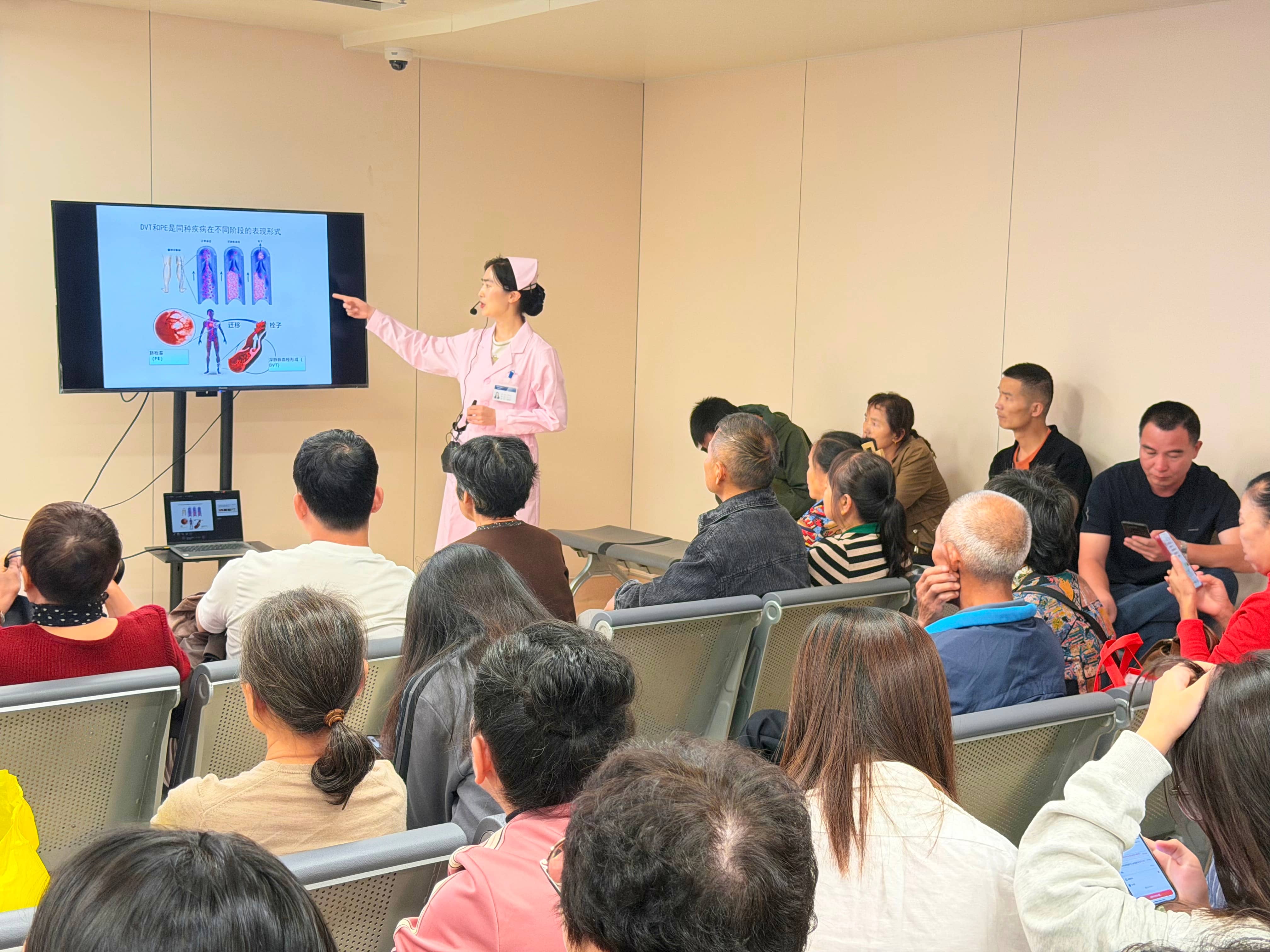 作为本次活动的重要环节,VTE防治护理小组为前来就诊的患者提供了专业的静脉血栓栓塞症风险评估。小组成员凭借扎实的专业能力,为高风险人群进行系统筛查,并依据评估结果制定“一人一策”的健康指导方案,内容涵盖饮食调整、科学运动与生活习惯优化等方面,切实推动血栓“精准防控”理念落地,助力患者将预防措施融入日常生活。