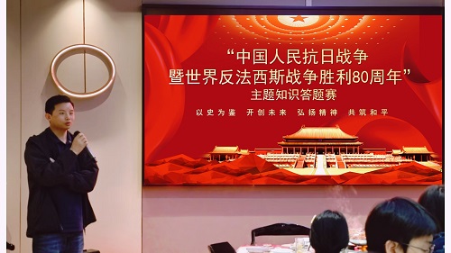 为巩固学习成效,激发爱国热情,党支部还组织了“中国人民抗日战争暨世界反法西斯战争胜利80周年”主题知识竞赛。竞赛题目涵盖抗日战争重大事件、重要人物、伟大精神、中国作为世界反法西斯战争东方主战场的贡献、抗战胜利纪念日意义及国防和军队建设常识等内容。现场采用抢答形式,气氛紧张热烈,参赛队员踊跃竞答,充分展现了前期学习的扎实成果和积极向上的精神风貌。活动对表现优异者给予了表彰奖励,进一步增强了参与感与荣誉感。