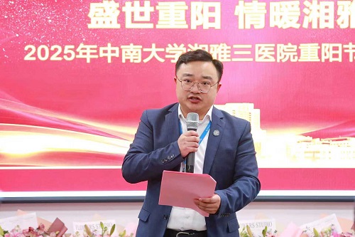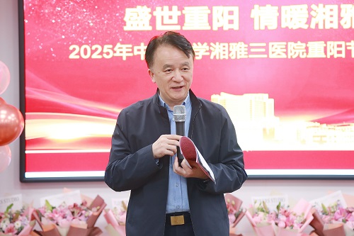 何庆南书记代表党委对老同志致以节日的慰问和衷心感谢。他指出,医院历经三十余年发展,当前正处在提质增效的关键阶段。通过一系列新举措,医院在多项“硬核”指标上表现亮眼:病床周转率位居前列,平均住院日缩短,医疗服务性收入在全省领先,同时万元医疗收入能耗占比保持低位,实现了降本增效。在回顾“十四五”规划时,他表示,尽管历经挑战,但医院上下齐心协力,门急诊量、手术规模等均实现显著增长,成绩斐然。面向未来,他强调医院将科学谋划“十五五”规划,并大力推行“有位就要有为,有为才能有位”的用人导向,激励科室主任担当作为,坚决反对“躺平”现象,以凝聚全院之力迎接新挑战、把握新机遇。他最后希望老同志们继续信任和支持医院,坚信湘雅三医院的明天必将更加美好。