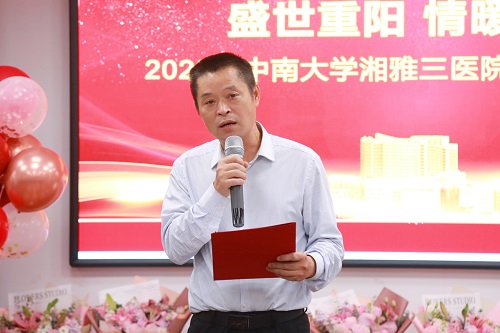 何桂强书记对医院的离退休工作给予了高度评价。他表示,湘雅三医院党政领导高度重视,离退休部门用心用情服务,离退休工作有温度有力量,真正让老同志做到了老有所学、老有所为、老有所乐!他用三首歌名表达此时此刻的心情:第一首是《革命人永远是年轻》,祝愿伴随着湘雅三医院建设一路走来的老同志永远年轻;第二首是《我的未来不是梦》,相信在老同志强有力的支持下,湘雅三医院的未来不是梦;第三首是《明天你是否依然爱我》。老同志的无私奉献如同灯塔指明着前进的方向,学校、医院将永远铭记,拜托广大老同志继续关心和支持学校、医院的各项工作,助力高质量发展。