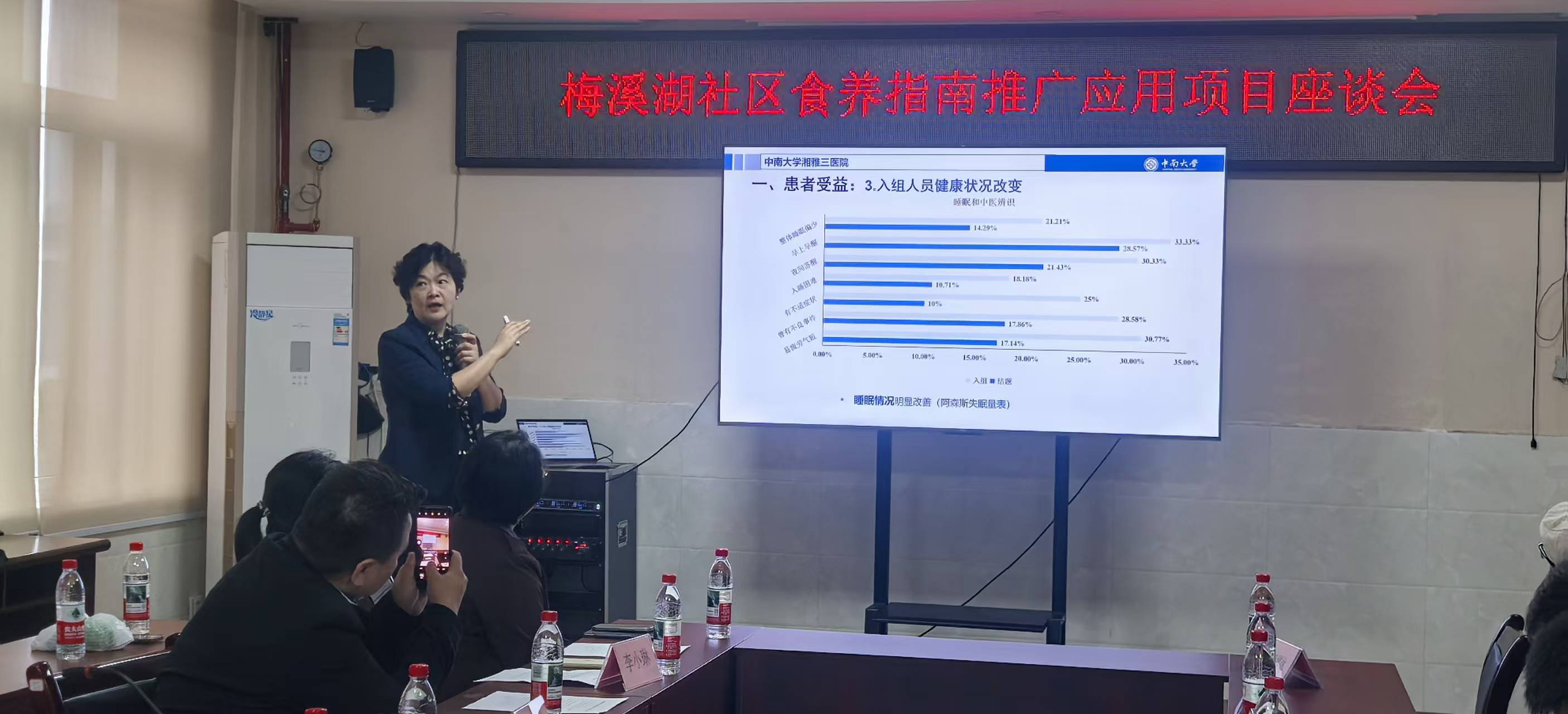 “3个月前,我还在为高血糖和吃几种药发愁,现在,我的血糖正常了,药减了,身体也感觉硬朗了不少!”参加该项目的毛叔叔在会议上分享了自己的经历。“虽然项目已经结束,但是我一直坚持管住嘴、迈开腿,积极运动,能吃的适量吃,不能吃的坚决不吃”。梅溪湖街道社区卫生服务中心院长戴敬康、社区医生代表李小琳分别发言,表示项目的开展为社区医生的营养发展提供了很大帮助。
