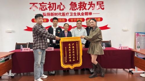 培训班学员医生代表、护士代表及班长王甫贤分别作了学习汇报,分享了在急救技能、团队协作和突发事件处置等方面的收获。随后,全体学员向培训导师团队赠送了写有“严慈并济传真知,受益终身感师恩”的锦旗,表达对老师们三个月来悉心指导的诚挚谢意。学员们表示:“这面锦旗承载着27名学员的共同心声,老师们不仅传授了精湛的急救技术,更用实际行动诠释了医者仁心的崇高精神。”