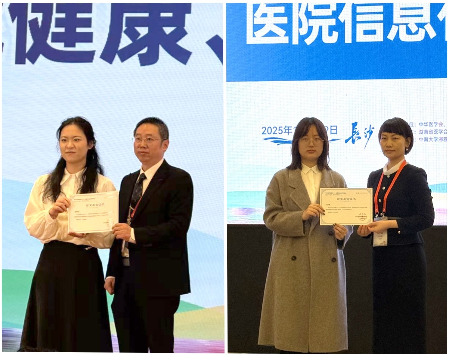 会上,中南大学湘雅三医院的青年学者表现尤为突出,他们以创新的研究和自信的表达,成为会场上一道亮眼的“湘雅风景线”。在论文发言环节,多位由医院专家指导的研究生,从“智能健康”“医院信息化”“医学信息教育”等方面汇报了创新研究成果。此外,医院多项研究成果入选大会壁报交流,吸引众多与会学者驻足探讨,充分展现了医院雄厚的人才储备、扎实的培养质量与充满活力的科研后备力量。