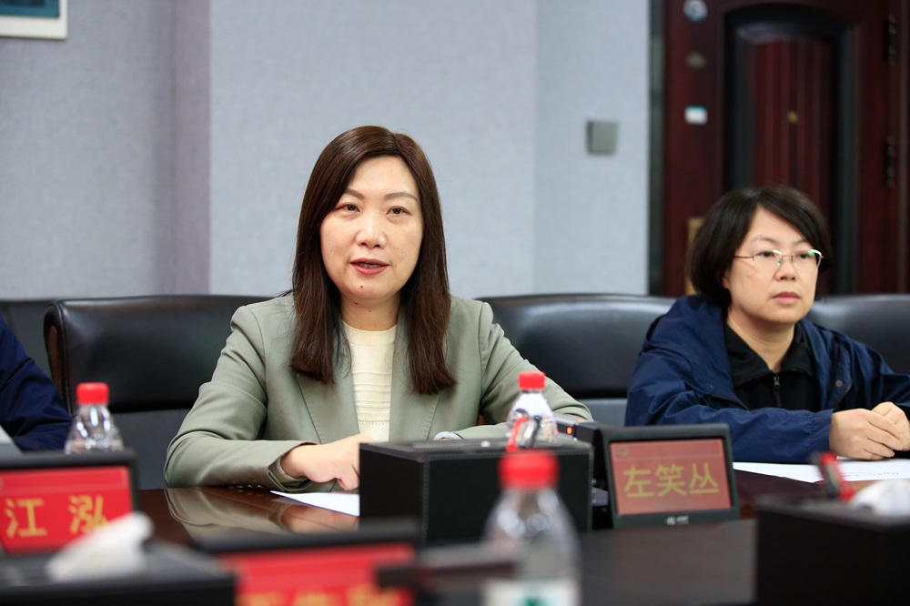 调研以座谈交流形式进行。江泓代表医院致欢迎词,他对王先民副主任一行的到访表示热烈欢迎,并简要介绍了医院在科研创新方面的基本情况,强调医院将积极响应省市产业发展部署,全力搭建高水平临床研究合作平台。随后,临床试验研究中心主任郭成贤围绕临床研究开展情况、平台建设成果、医企合作基础及现阶段存在的困难等方面做专题汇报。